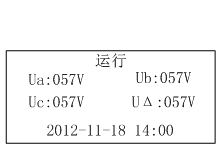 當(dāng)裝置上電后,將顯示系統(tǒng)運行電壓和當(dāng)前時間??梢酝ㄟ^方向按鍵來進(jìn)行顯示界面切換。