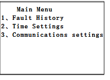 通過“↑↓”按鍵查詢最近10次故障的歷史記錄。按下“取消”返回主菜單界面,按“-”鍵清除存儲器記錄。